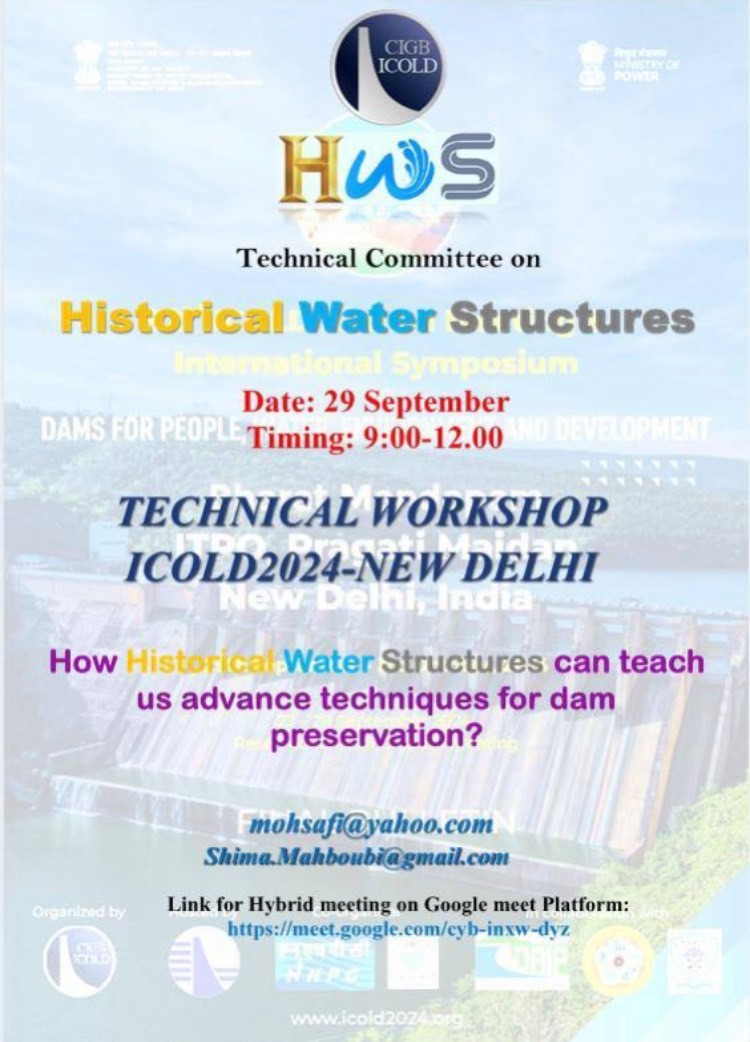 کارگاه تخصصی کمیته تخصصی سازه های تاریخی آب کمیسیون بین المللی سدهای بزرگ با عنوان "درسهایی که سازه های تاریخی آب در موردفناوری های جدید حفاظت بما می آموزن" در حاشیه سمپوزیم جهانی سدهای بزرگ ۲۰۲۴، 8 مهر 1403 (29 سپتامبر 2024)، توسط نمایندگان دانشگاه شهید بهشتی در دهلی برگزار شد.