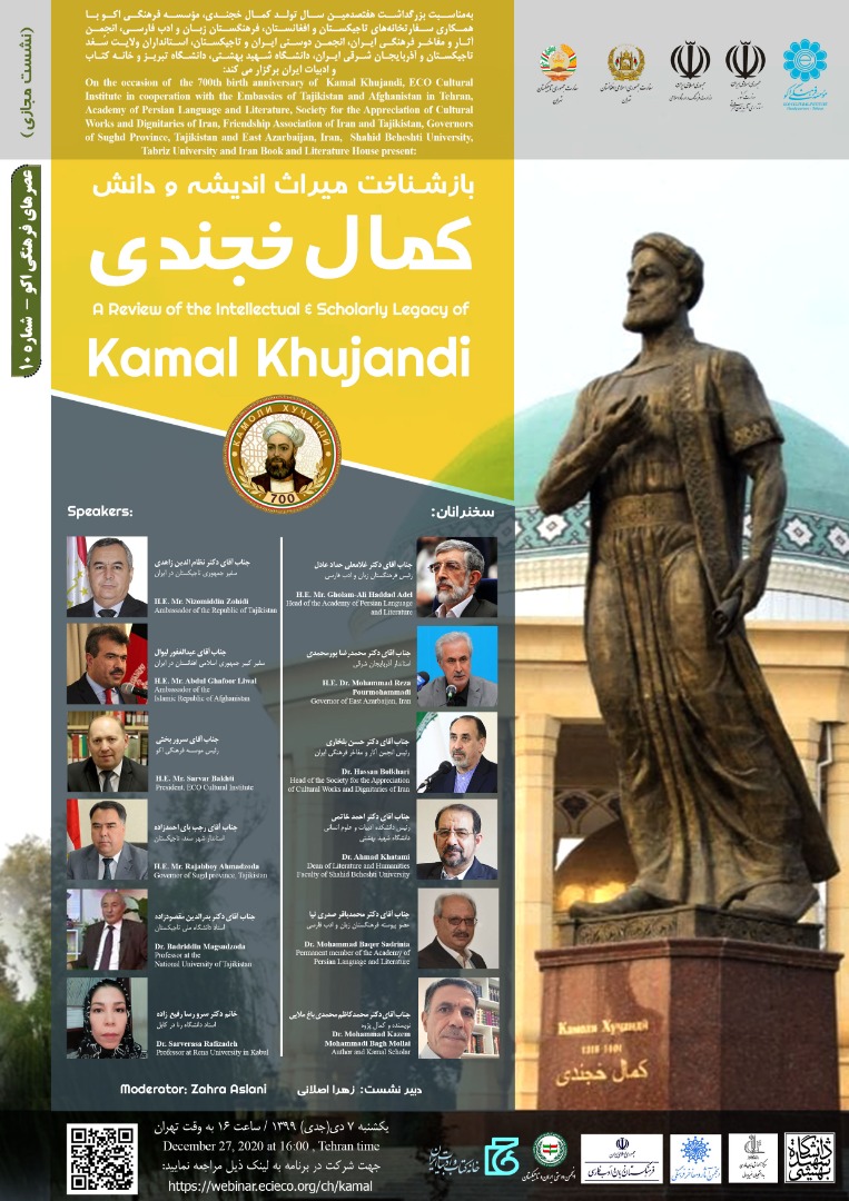 برگزاری نشست بازشناخت میراث اندیشه و دانش کمال خجندی 9146 بازدید print share 07 دی به مناسبت بزرگداشت هفتصدمين سال تولد کمال خجندی، معروف به شیخ کمال از عارفان و شاعران پارسیگوی قرن هشتم هجری،...