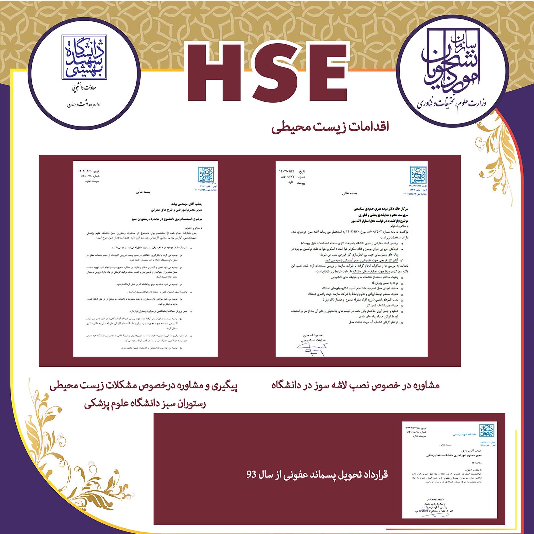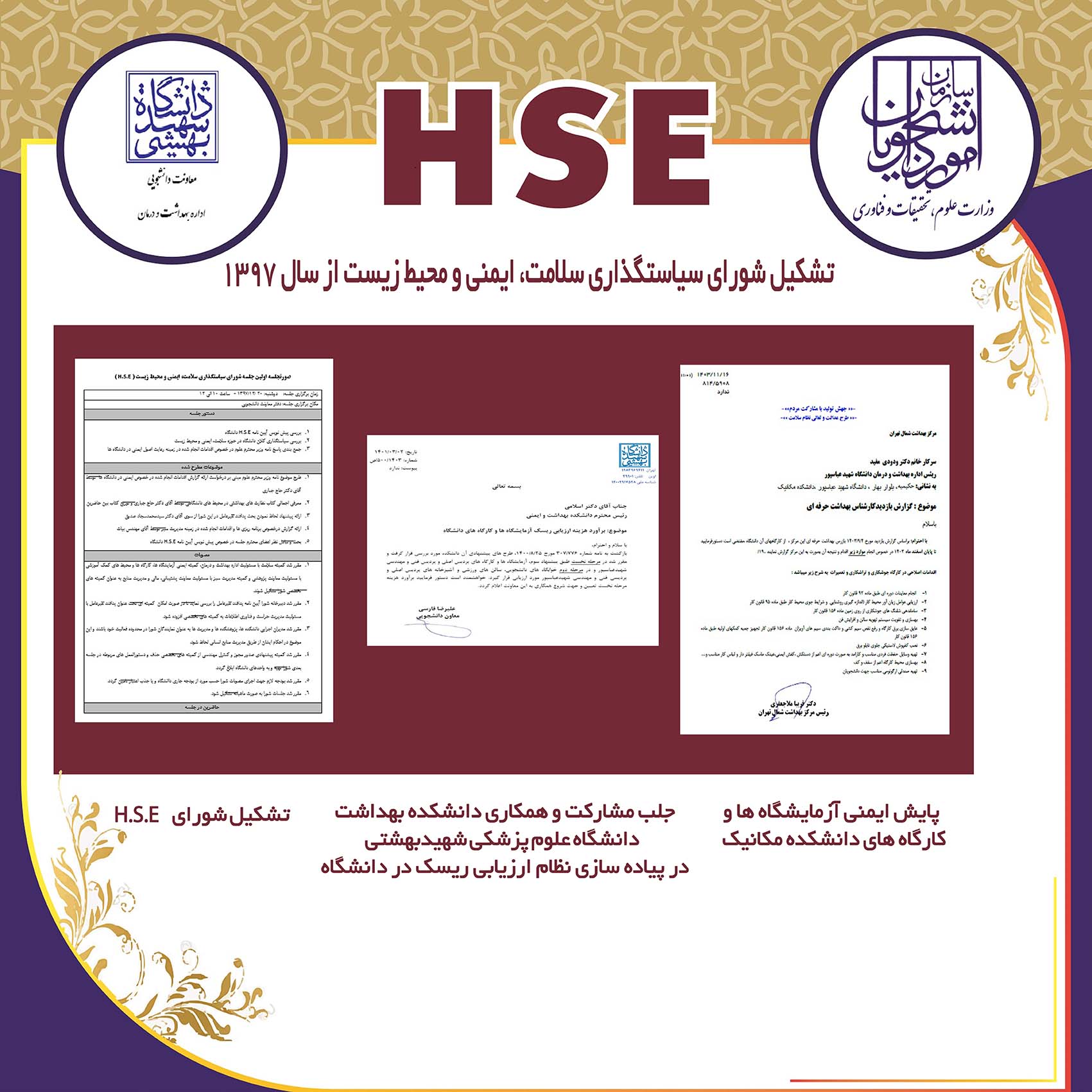 ارائه پوستر اقدامات اداره بهداشت و درمان در حوزه سلامت، ایمنی و محیط زیست (HSE) در نهمین نمایشگاه پدافند غیرعامل سال 1404،  غرفه وزارت عتف